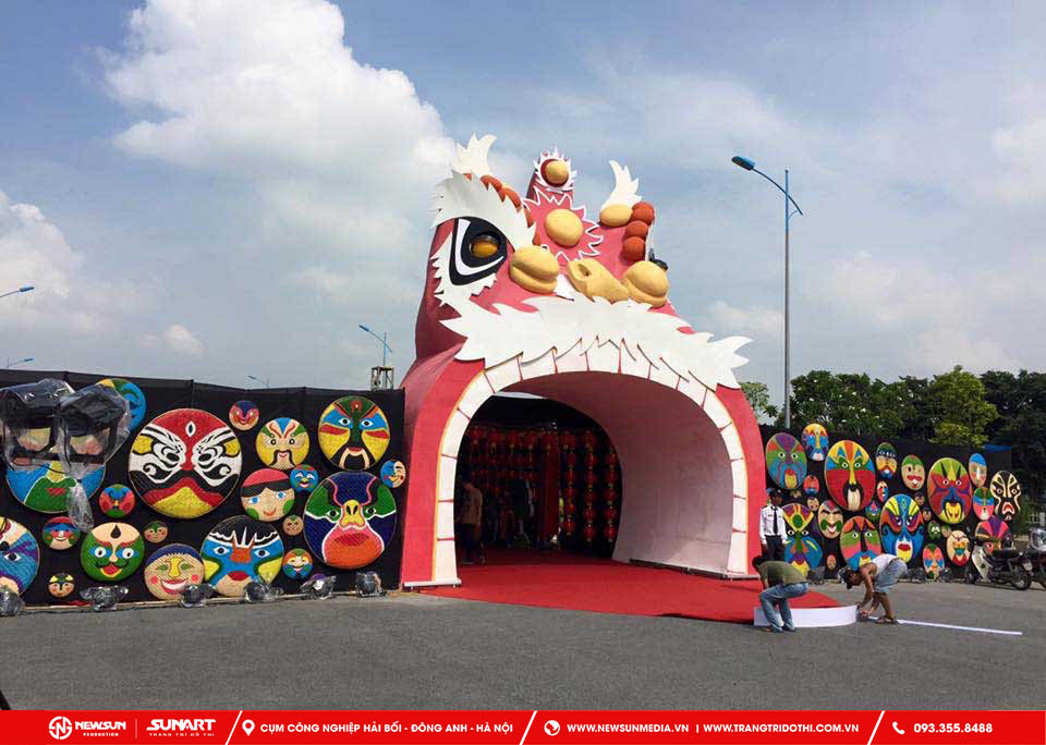 Trang trí cổng chào trung thu với hình tượng đầu lân